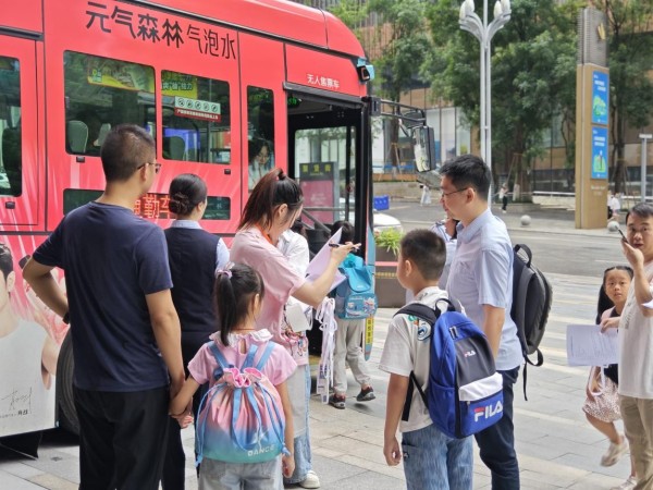 校車定點接送。郵儲銀行重慶分行供圖