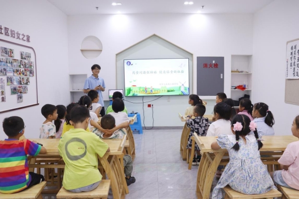 “剪韻承藝”——紅紙翻飛間,孩子們在志愿者指導下鏤刻“中國結”“福字窗花”,理解對稱美學與吉祥文化?!捌嵘壤L彩”——生漆入水暈染成畫,孩童驚嘆聲中,古老漆藝智慧與現代審美碰撞?!跋隳易o健”——孩子們輕捻藿香、蒼術、白芷等中藥材,親手制成香囊系在腰間,笑言“這是會走動的中藥鋪”。