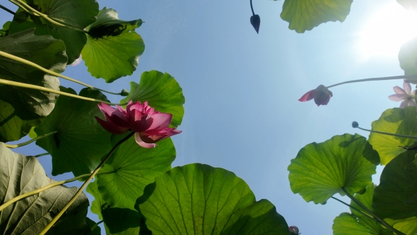 立秋已至,暑氣未消,大足區的荷塘藏著一份獨有的清涼意趣。不同于尋常賞荷的平視或俯瞰,當地荷塘里,從水面仰拍荷花的新奇視角正悄然走紅——透過田田蓮葉的縫隙望向碧空下的荷影,成了人們解鎖“蔭荷生涼”的新晉打卡方式。