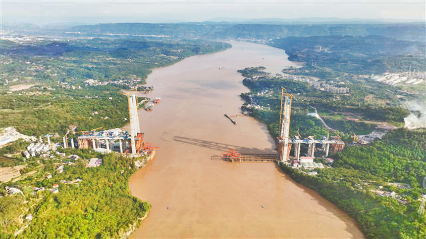 10月5日,世界最高雙聯主塔——石沱長江大橋6號主塔順利封頂。至此,大橋兩座主塔全部封頂,為后續全線按期建成通車打下堅實基礎。