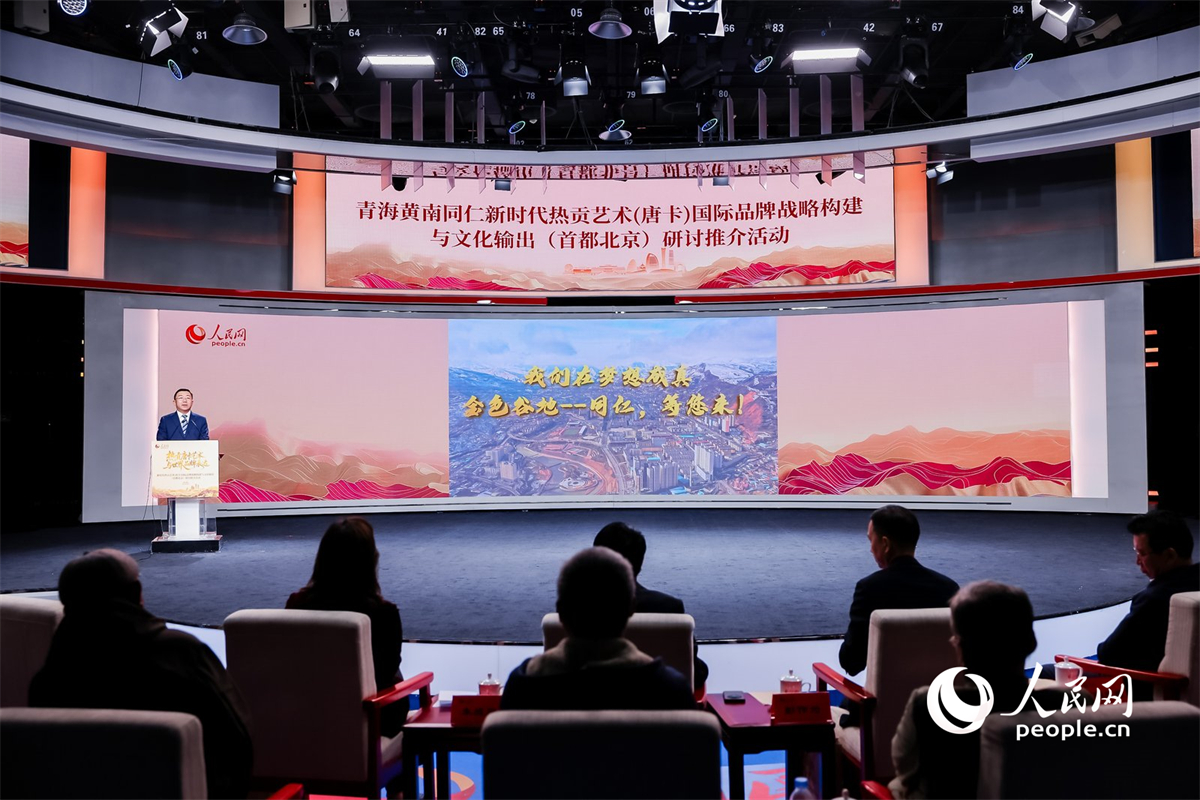 人民網北京10月24日電 (楊啟紅、況玉)10月24日,由中共同仁市委、同仁市人民政府主辦的青海黃南同仁新時代熱貢藝術(唐卡)國際品牌戰略構建與文化輸出(首都北京)研討推介活動在人民日報社新媒體大廈人民網一號演播廳如期舉行,同步啟動“熱貢藝術(唐卡)國際品牌”全球推廣計劃,“從文化力到品牌力——民族特色文化品牌構建的熱貢實踐”金臺圓桌研討會當日舉行。