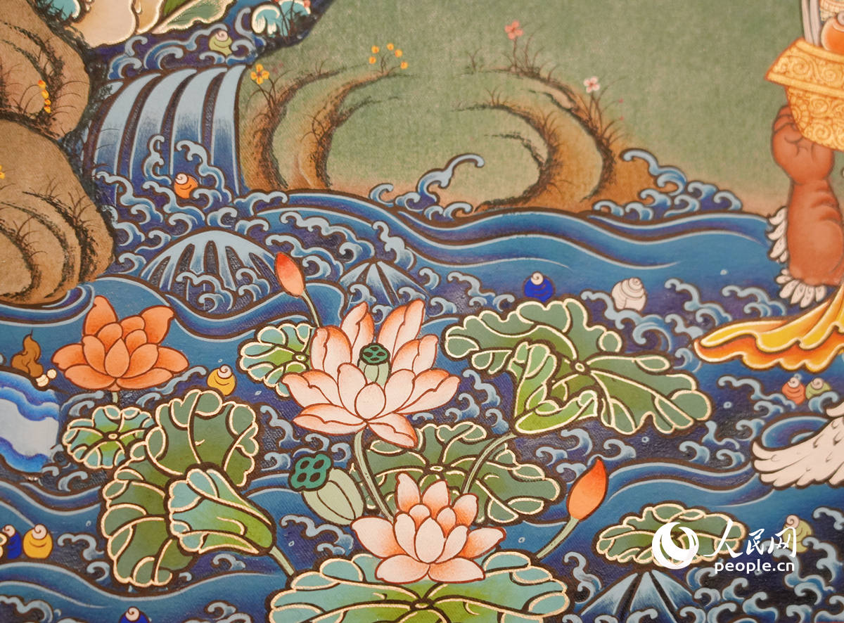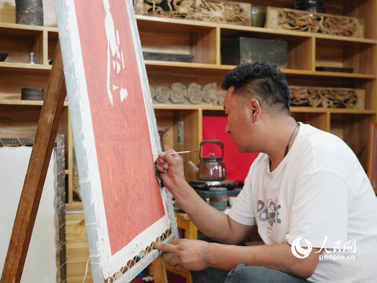 青年唐卡畫師正在繪唐卡。人民網記者 楊啟紅攝