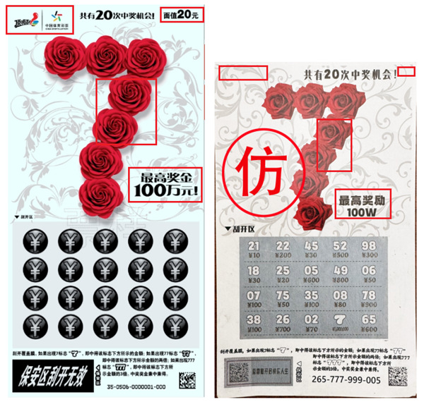 近期,市場上出現偽造、變造、仿造即開票,甚至有持仿造票兌獎的情況發生,嚴重擾亂彩票市場秩序,也損害了購彩者和彩票銷售人員的合法權益。為維護健康的購彩環境,重慶市體育彩票管理中心特此提醒廣大購彩者與體彩銷售人員提高警惕,加強防范。